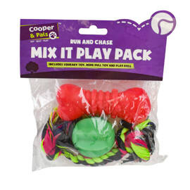 Cooper & Pals Zestaw zabawek dla psa piszcząca kostka, lina do ciągania, piłka 3 szt.