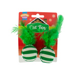 Cooper & Pals Piłeczki z piórkiem świąteczna zabawka dla kota zielone 6 cm 2 szt.