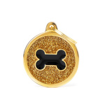 Zawieszka Adresówka Identyfikator z grawerem dla psa i kota kółko z kością złote brokat
