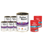 Mokra karma dla psa junior Dolina Noteci Premium bogata w wątróbkę z królika zestaw 12 x 400 g + Superfood danie z jagnięciny Junior 2 x 150 g gratis