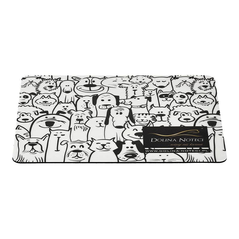 Podkładka pod myszkę od Doliny Noteci, z charakterystycznym czarno-białym nadrukiem w pieski i kotki, jest odpowiednia dla myszek optycznych i laserowych. Grafika CMYK na folii moletowanej PVC 0,3 mm, zapewnia precyzyjną kontrolę ruchu. Podkładka jest odporna na zniszczenia, łatwa do czyszczenia, klejona kauczukiem syntetycznym 2 mm. Standardowy rozmiar 230x180 sprawia, że doskonale pasuje na każde biurko.