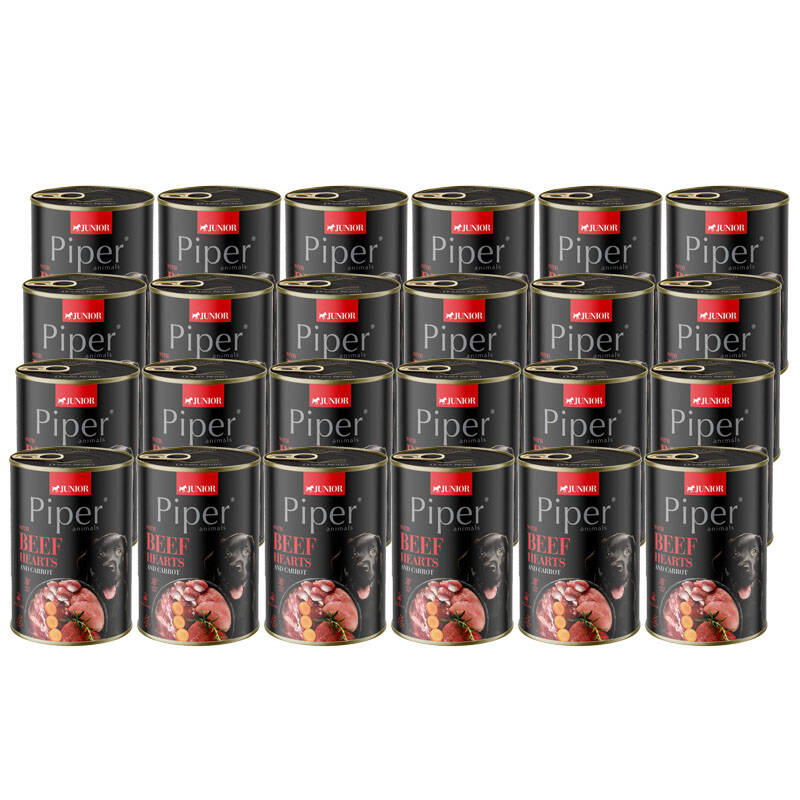 Piper Animals Junior Mokra karma dla psa z sercami wołowymi i marchewką zestaw 24 x 400 g