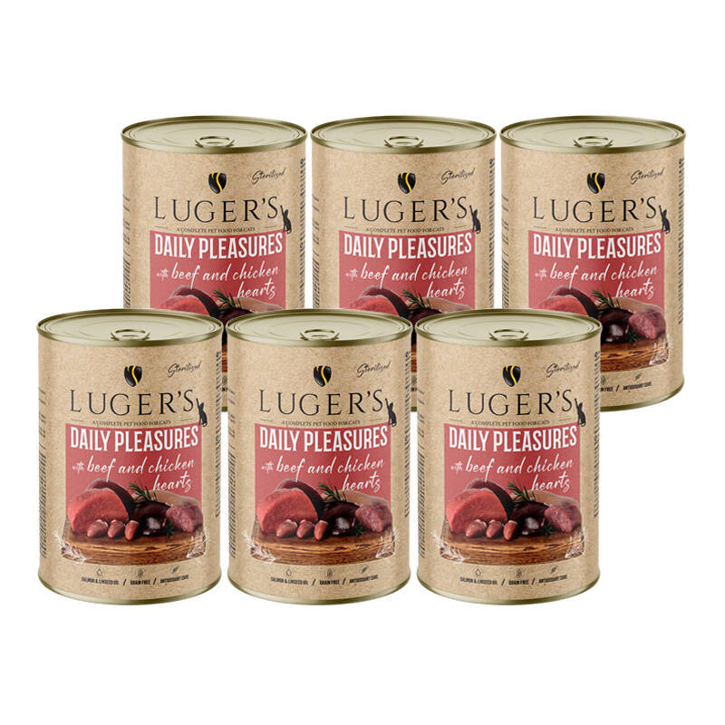 Karma mokra dla kota Luger's Daily Pleasures Sterilised z wołowiną i sercami z kurczaka zestaw 6x400 g