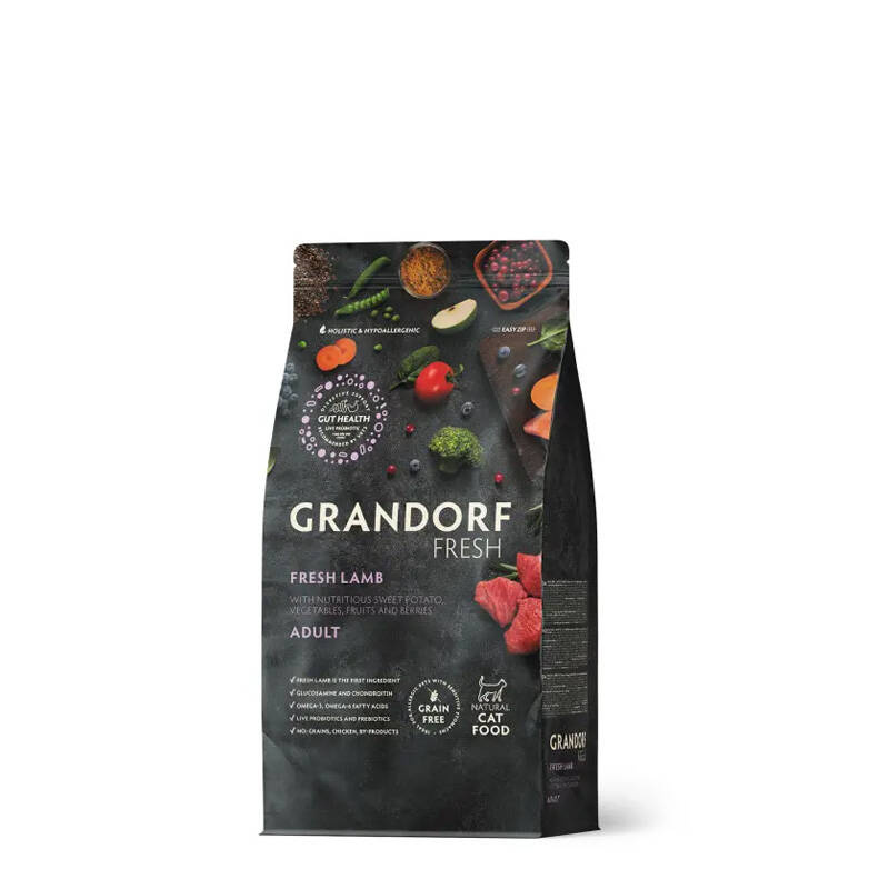 Grandorf Cat Fresh Lamb Adult Karma sucha dla dorosłych kotów o wrażliwym układzie pokarmowym lub skłonnych do alergii Jagnięcina 400 g