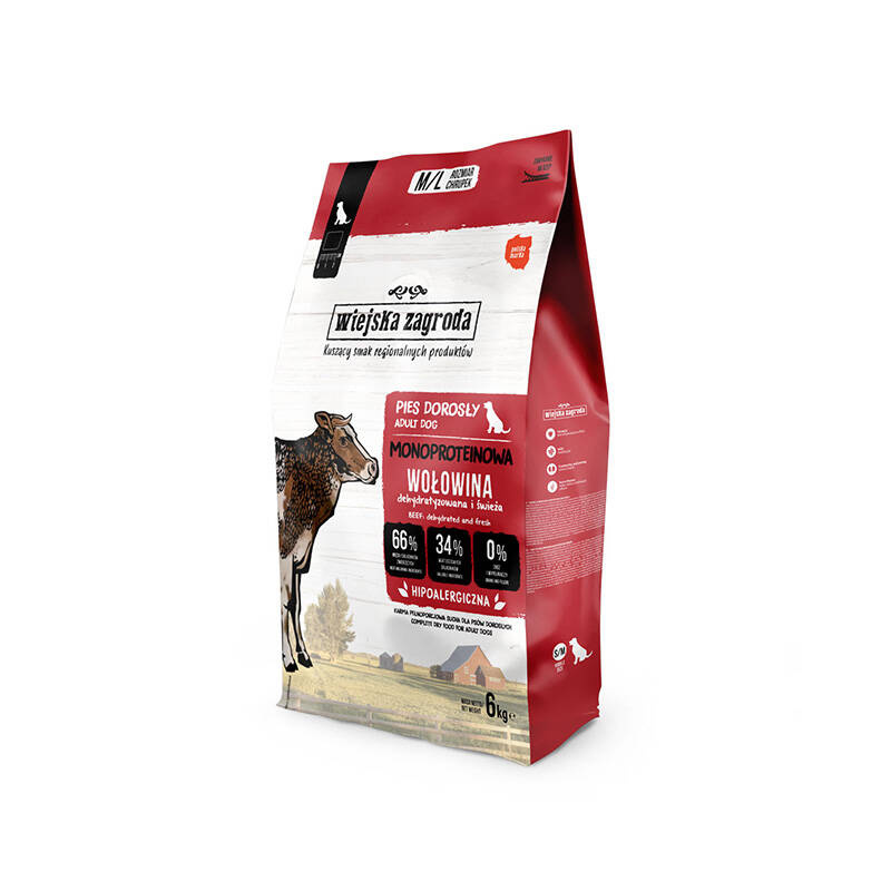 Wiejska Zagroda karma sucha dla psa monobiałkowa wołowina chrupki M/L 6kg