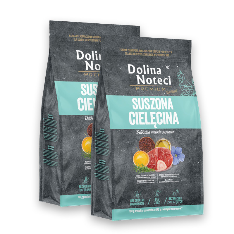 - Dolina Noteci Premium Karma suszona dla kota po sterylizacji cielęcina zestaw 2 x 2 kg