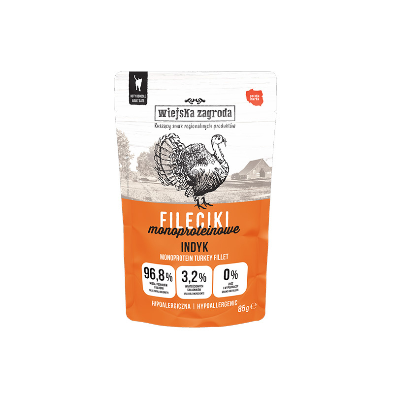 Wiejska Zagroda – karma mokra dla kota – Fileciki Indyk