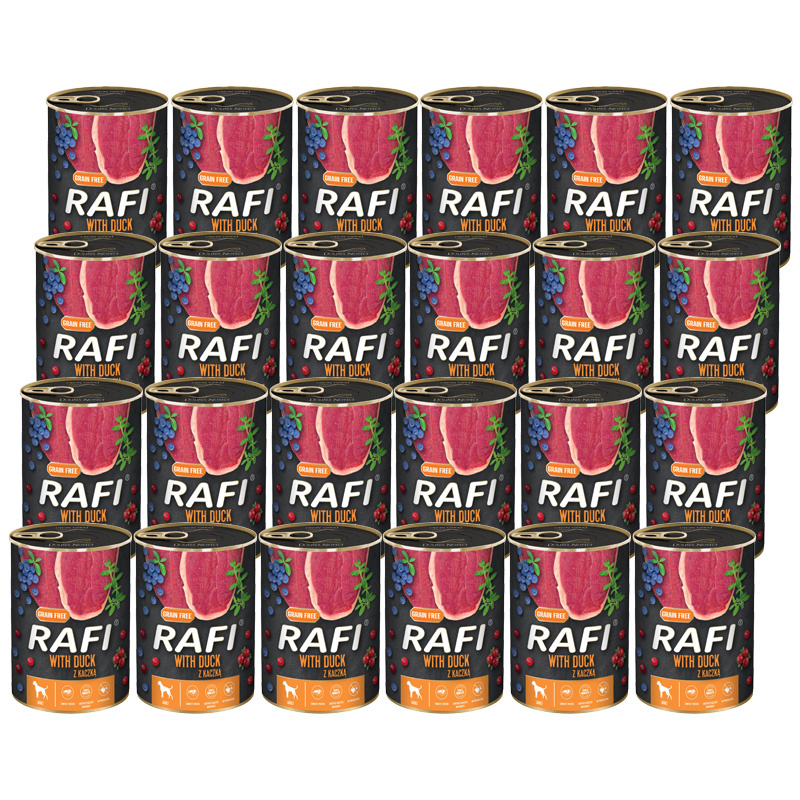 Mokra karma dla psa Rafi z kaczką zestaw 24 x 400 g