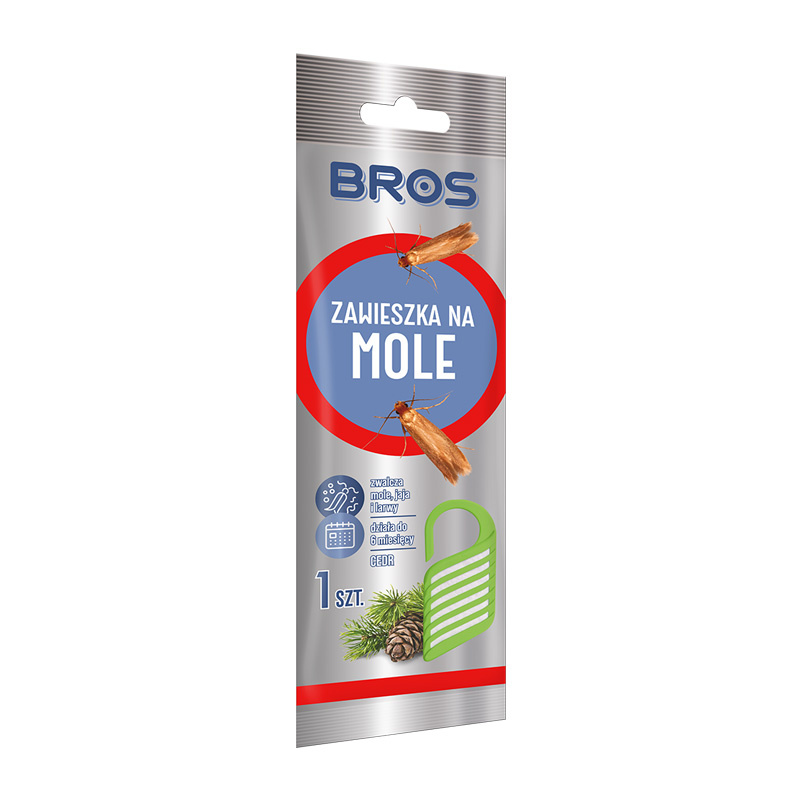 Zawieszka do zwalczania moli odzieżowych. Skutecznie chroni odzież przechowywaną w szafach, szufladach i garderobach przed niszczącym działaniem moli. Zwalcza mole we wszystkich stadiach rozwojowych – jaja, larwy i osobniki dorosłe.