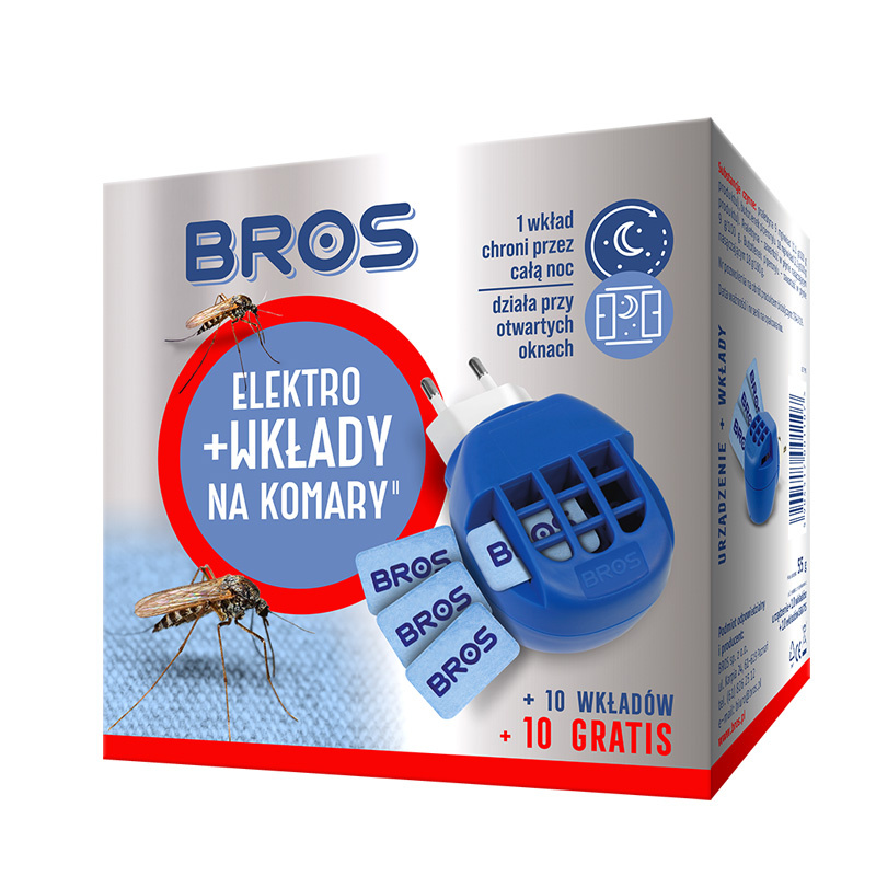 Bros Elektryczny odstraszacz komarów elektrofumigator + 10 wkładów + 10 gratis
