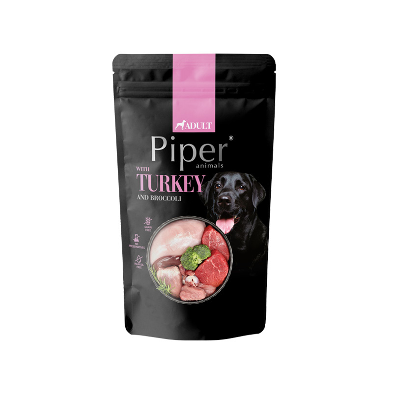 Piper Animals z indykiem i brokułem pełnoporcjowa karma mokra dla dorosłych psów wszystkich ras.