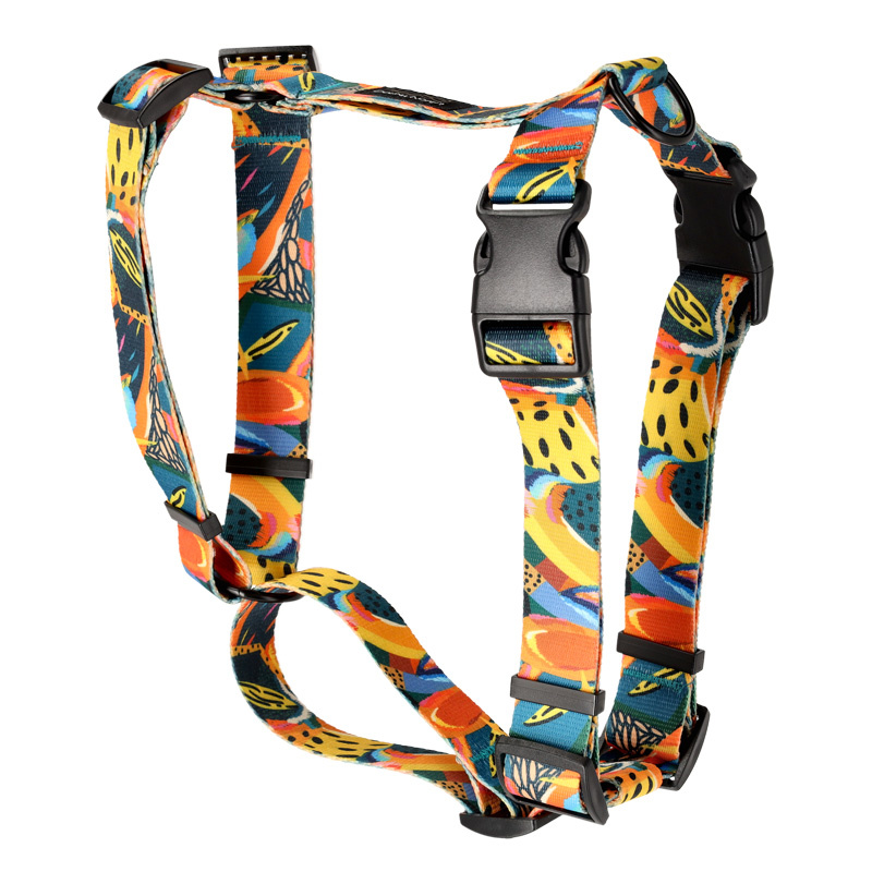 Szelki guard dla psa sprawdzą się doskonale jako alternatywa dla klasycznej obroży, zwłaszcza jeśli pies jest bardzo żywiołowy. Trzymanie psa na smyczy podpiętej do szelek sprawia, że podczas gwałtownych ruchów zwierzę nie czuje nadmiernego ciągnięcia w okolicy klatki piersiowej. Tego typu szelki sprawdzą się również w przypadku psów, którym zdarzają się ucieczki i potrafią same oswobodzić się z obroży. Szelki zapewniają swobodę ruchów, wykonane z mocnej, odpornej na zaciągnięcia taśmy w przyciągający spojrzenia egzotyczny wzór. Metalowy ring pokryty został warstwą niklu podnoszącą jego trwałość, ale także chroniącą element przed szkodliwym działaniem korozji. Dzięki regulacji można dopasować je idealnie do wymiarów psa i zapewnić mu komfort noszenia oraz maksimum bezpieczeństwa a zdjęcie szelek wymaga pomocy człowieka. Stanowią świetny zestaw ze smyczą – przepinaną lub zwykłą, uszytą z tego samego materiału. Szelki są dostępne w kilku rozmiarach. To doskonała propozycja zarówno na letnie, jak i jesienne spacery.