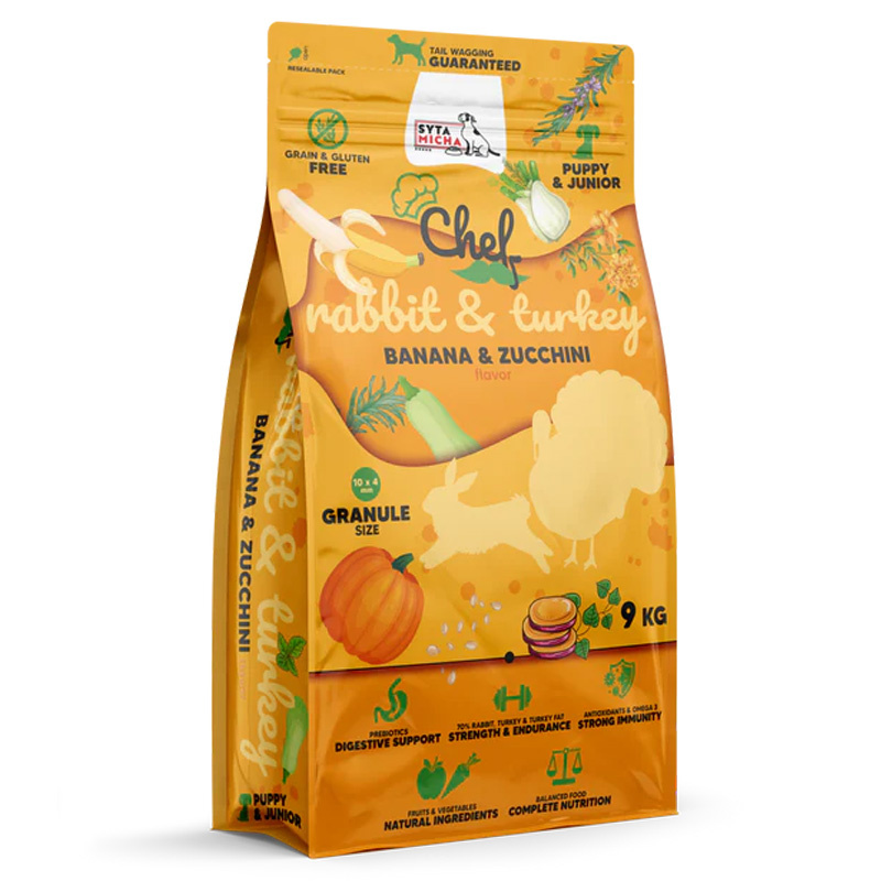 Syta Micha Chef Junior Sucha karma dla szczeniąt Królik i indyk, banan i cukinia 9 kg