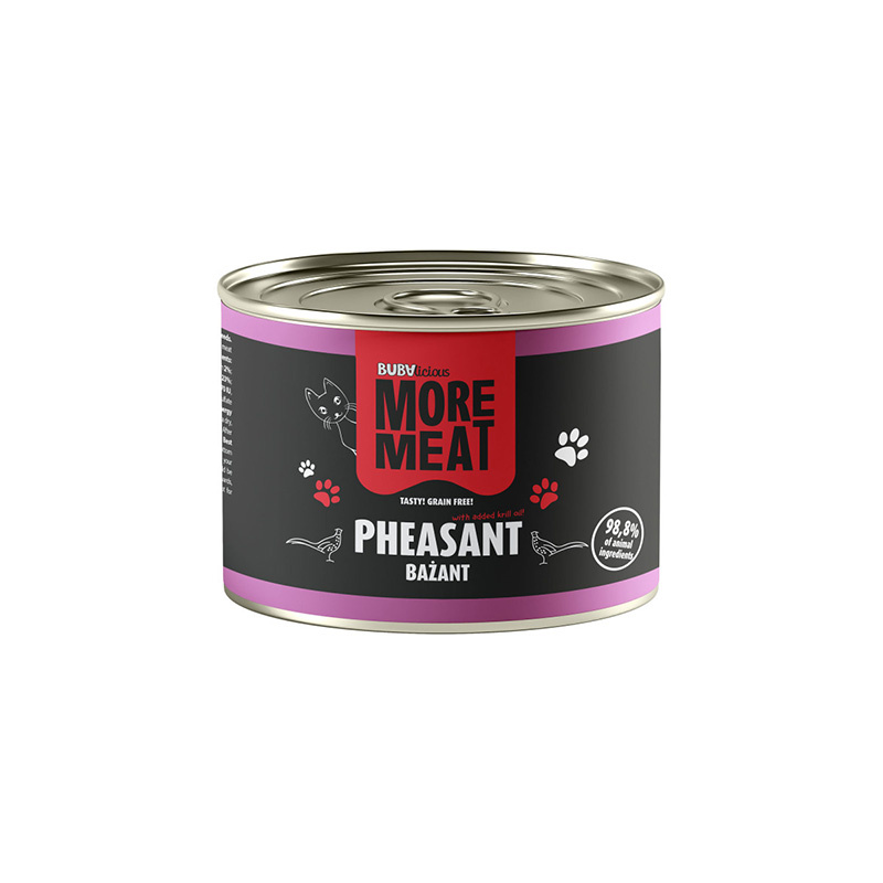 Bogata w lekkostrawne mięso bażanta (98,8%), minerały (1%) oraz olej z kryla (0,2%) – doskonały wybór dla kotów o wrażliwym układzie trawiennym i z alergiami pokarmowymi.
