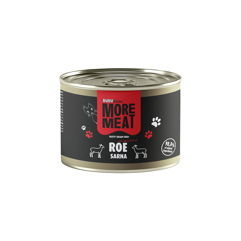 Bogata w delikatne i lekkostrawne mięso sarny (98,8%), minerały (1%) oraz olej z kryla (0,2%) – doskonały wybór dla kotów o wrażliwym układzie trawiennym i z alergiami pokarmowymi.