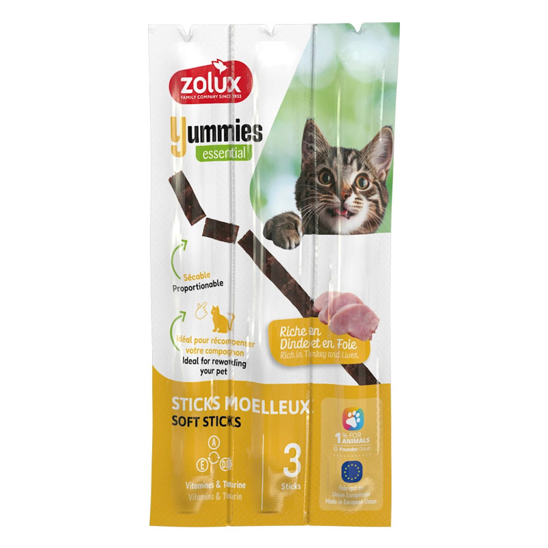Zolux Yummies Miękkie przysmaki dla kota pałeczki indyk wątróbka 3 szt. po 5 g