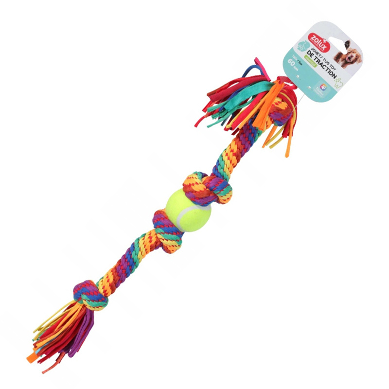 ZOLUX Szarpak dla psa – Sznur z piłką tenisową RAINBOW 60 cm