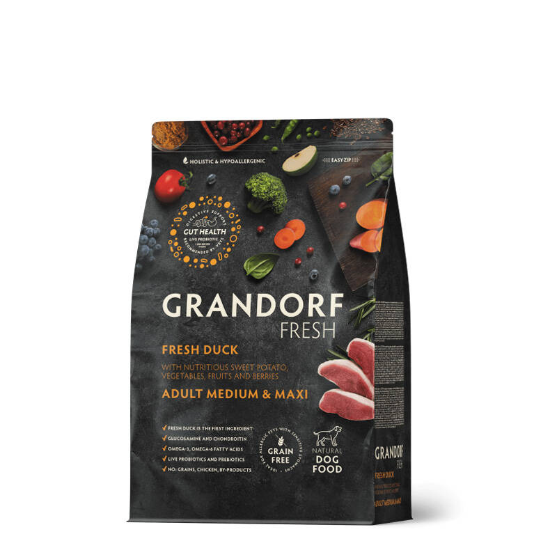 Grandorf Fresh Karma sucha dla psów średnich i dużych ras o wrażliwym układzie pokarmowym Kaczka 3 kg + 1 kg Gratis