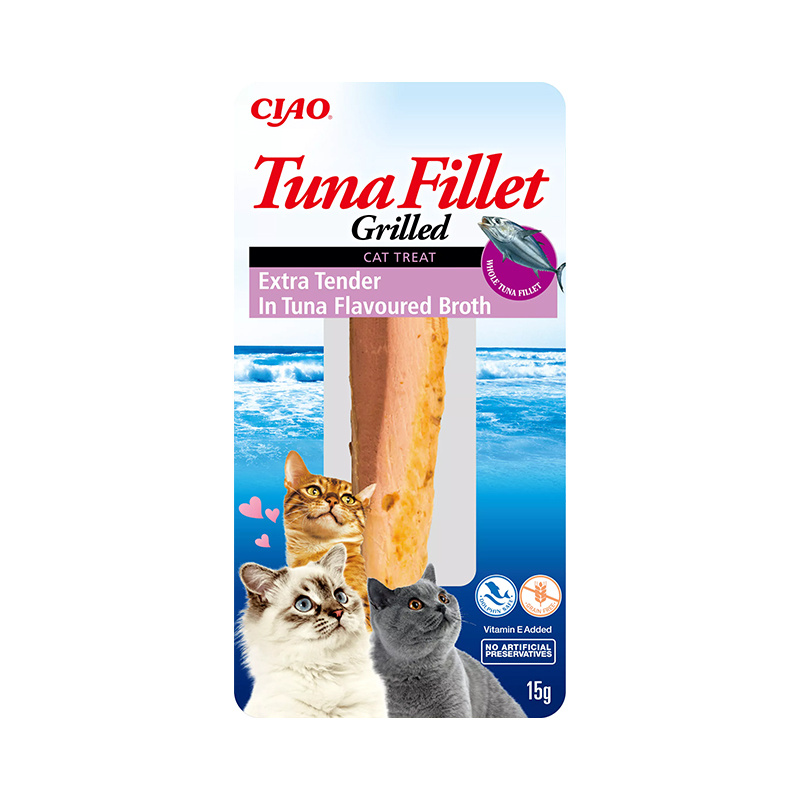 Inaba Ciao Tuna Fillet Extra Tender in Tuna Flavoured Broth to luksusowy japoński smakołyk, który zachwyci nawet najbardziej wybredne mruczki. Starannie dobrane mięso tuńczyka z certyfikowanych hodowli, lekko grillowane i otulone bulionem tuńczykowym, tworzy idealną kompozycję smaku i aromatu.