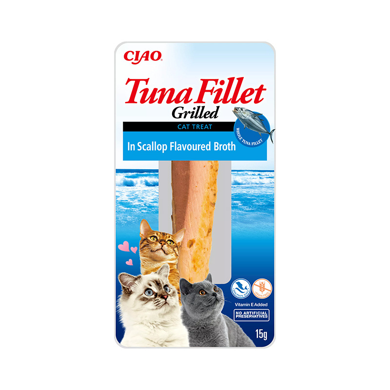 Inaba Ciao Tuna Fillet in Scallop Flavoured Broth to luksusowy przysmak dla kotów, łączący lekko grillowany filet z tuńczyka z delikatnym bulionem przegrzebkowym. Starannie wyselekcjonowane mięso z certyfikowanych hodowli zapewnia nie tylko wyjątkowy smak, ale też wartościowe źródło białka.