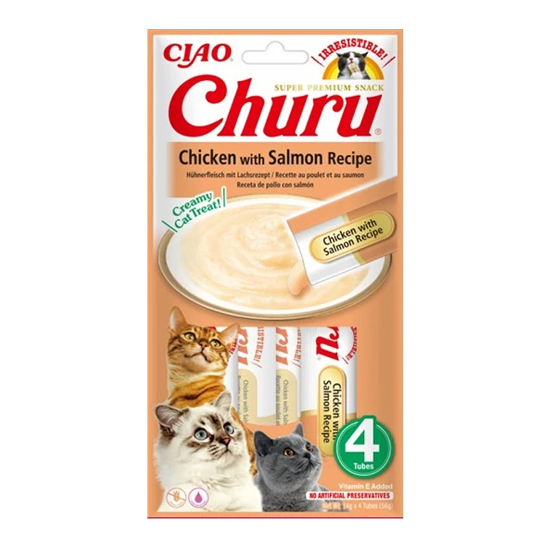 Inaba Churu Kremowy przysmak dla kota o smaku kurczaka z łososiem 4 x 14 g