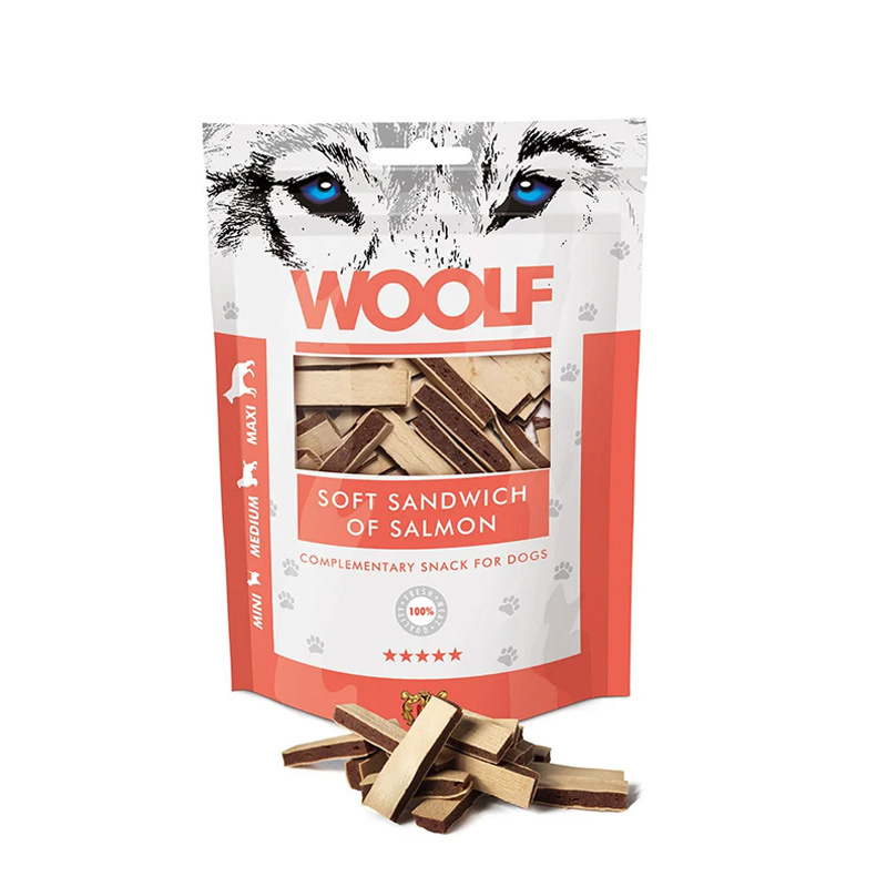 Woolf Przysmak dla psa Miękkie kanapeczki z łososiem 100 g