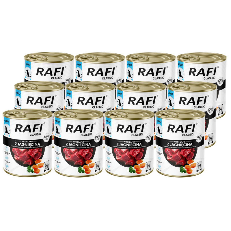 Mokra karma dla psa Rafi Classic z jagnięciną zestaw 12 x 800 g