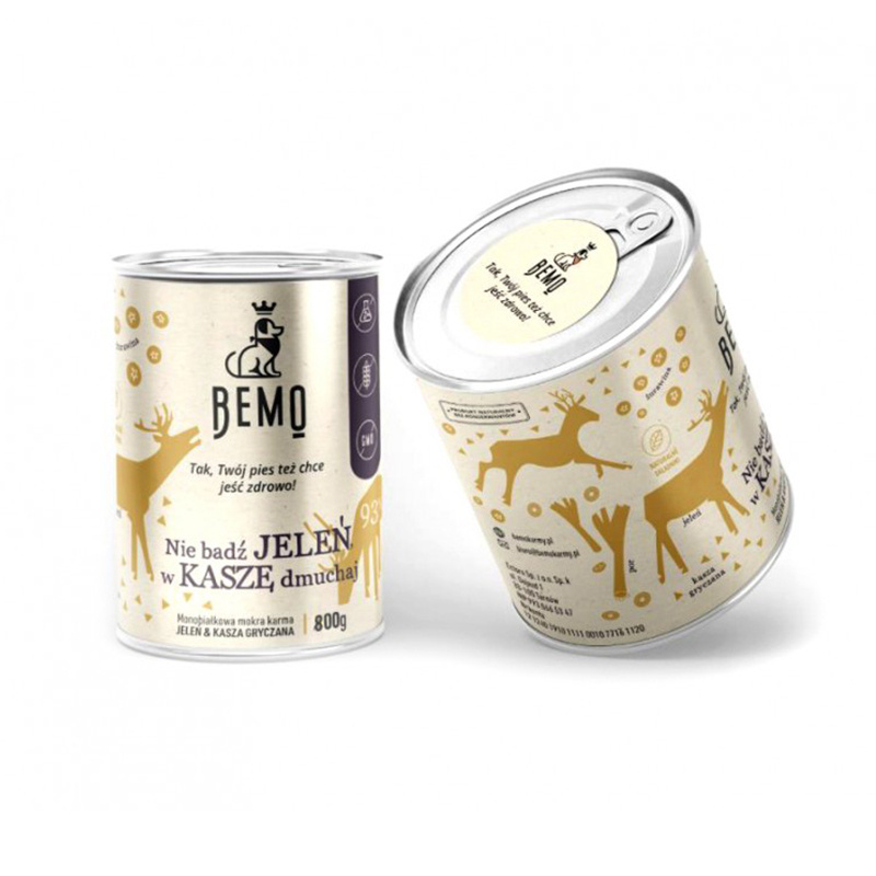 Bemo Monobiałkowa karma mokra dla psów z jeleniem Nie bądź jeleń w kaszę dmuchaj 800g