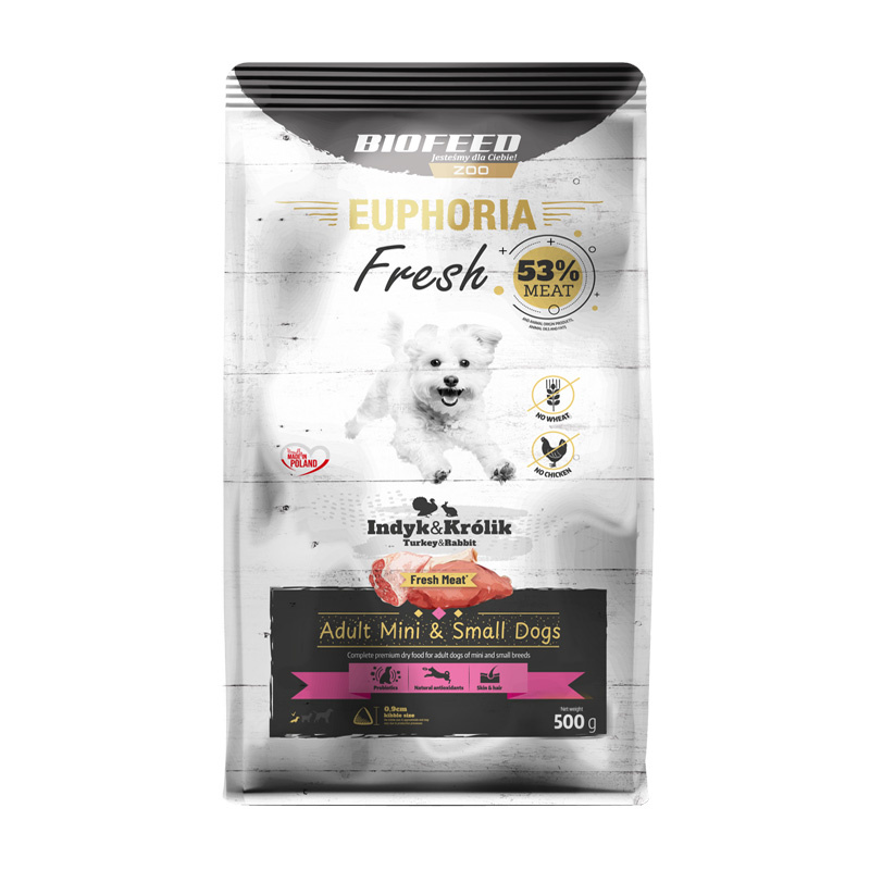 Biofeed Euphoria Fresh Karma sucha dla psów z indykiem i królikiem mini i małe rasy 500 g