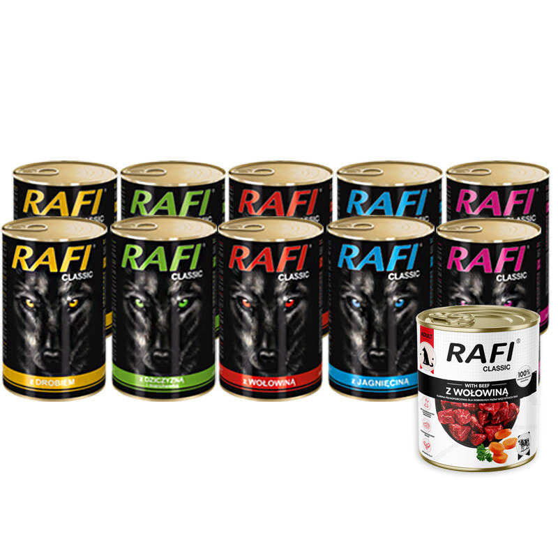 Mokra karma dla psa Rafi Classic Mix 10 x 1240 g + Rafi Classic z wołowiną 800 g gratis