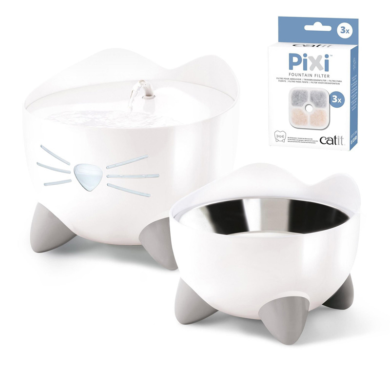 Pixi Fountain Combo Zestaw poidło dla kota 2,5 l białe + miska + opakowanie filtrów CH-7216 gratis