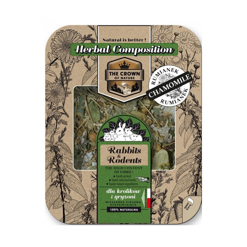 Naturalna mieszanka ziołowa, stworzona z myślą o królikach i gryzoniach, a w szczególności o koszatniczkach. Zawiera rumianek, który wspomaga trawienie, działa łagodząco na układ pokarmowy i ułatwia przyswajanie składników odżywczych.