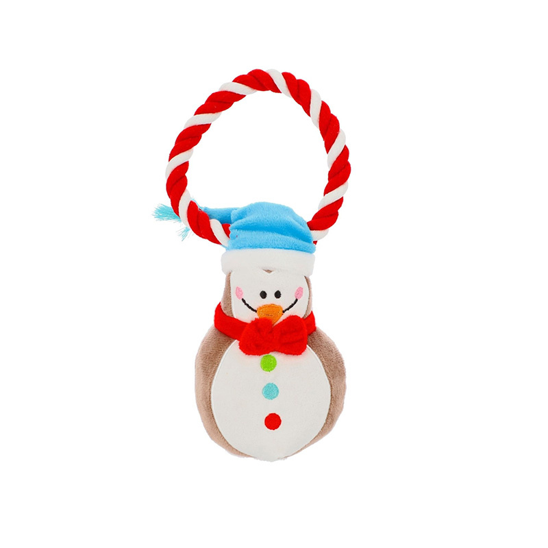 Świąteczny pingwin został wykonany z plecionego, bawełnianego sznura oraz miękkiego pluszu z bezpiecznym wypełnieniem. Pośród wypełnienia ukryta jest piszczałka, która dodaje zabawie dynamiki i utrzymuje zainteresowanie pupila na dłużej.