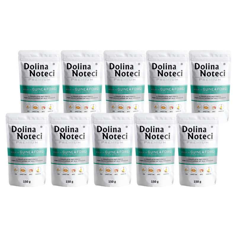 Mokra karma dla psa Dolina Noteci Premium bogata w perliczkę z jabłkiem zestaw 10 x 150 g