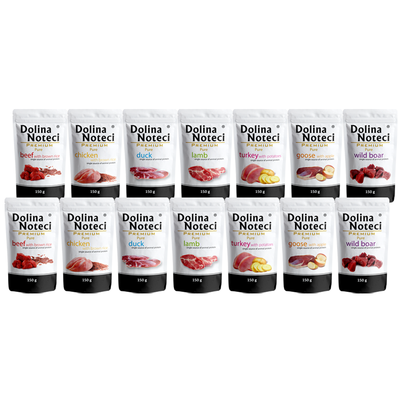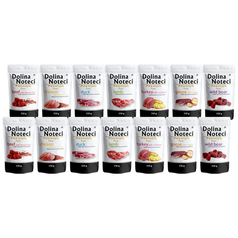Mokra karma dla psa alergika Dolina Noteci Premium Pure mix smaków zestaw 14 x 150 g