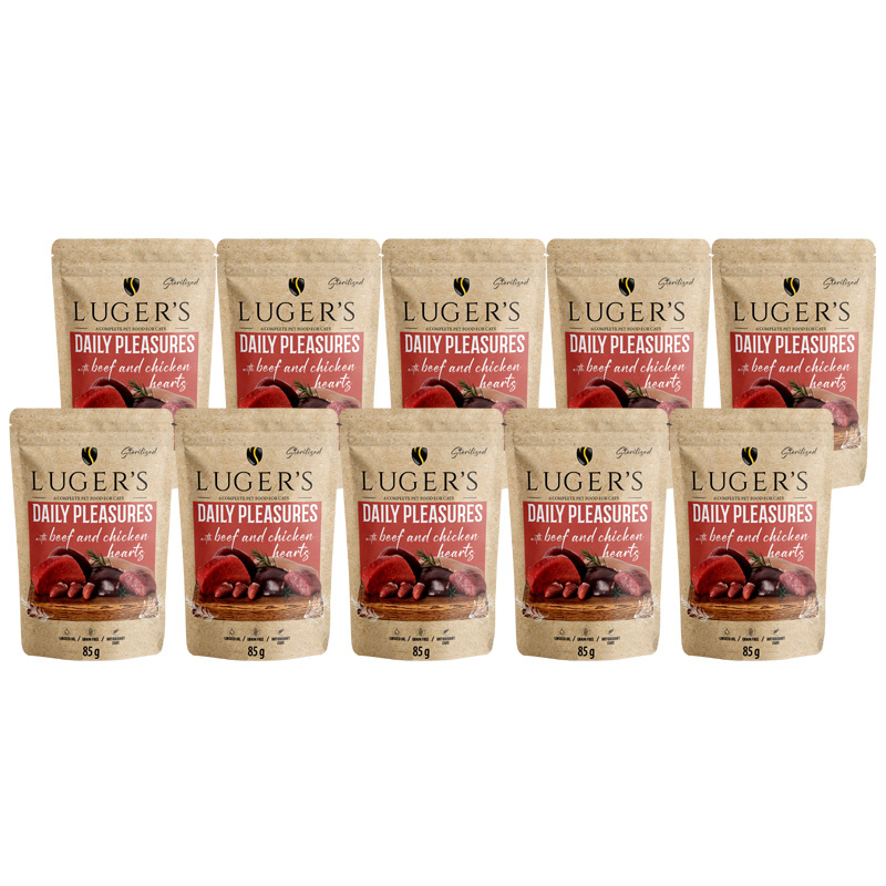 Karma mokra dla kota Luger's Daily Pleasures Sterilised z wołowiną i sercami z kurczaka zestaw 10 x 85 g