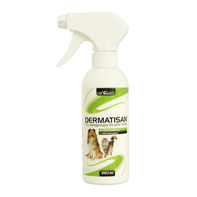 Kluczowym składnikiem Dermatisan jest chlorheksydyna – substancja znana z silnych właściwości antyseptycznych. Stosowanie preparatu pomaga w dokładnym i efektywnym oczyszczeniu skóry, co jest szczególnie istotne dla zwierząt z problemami dermatologicznymi. Produkt nie tylko oczyszcza, ale także wspomaga poprawę kondycji włosa, co przekłada się na jego zdrowy wygląd. Dermatisan aplikować można bezpośrednio na skórę, bez konieczności używania atomizera, co zwiększa wygodę stosowania.