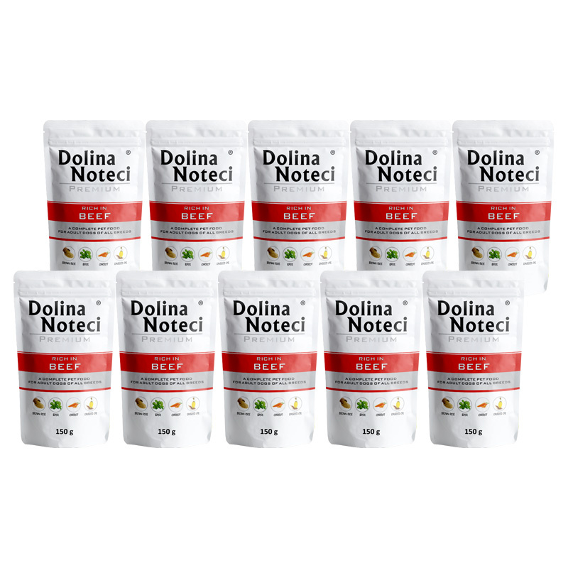 Mokra karma dla psa Dolina Noteci Premium bogata w wołowinę zestaw 10 x 150 g