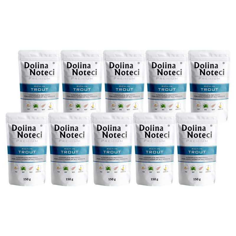 Mokra karma dla psa Dolina Noteci Premium bogata w pstrąga zestaw 10 x 150 g