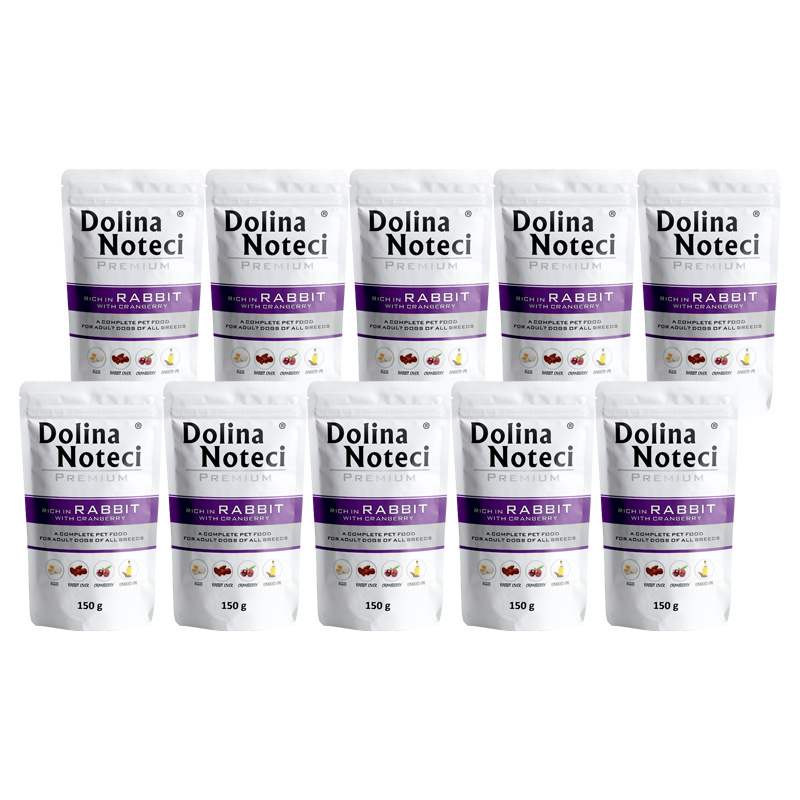 Mokra karma dla psa Dolina Noteci Premium bogata w królika z żurawiną zestaw 10 x 150 g