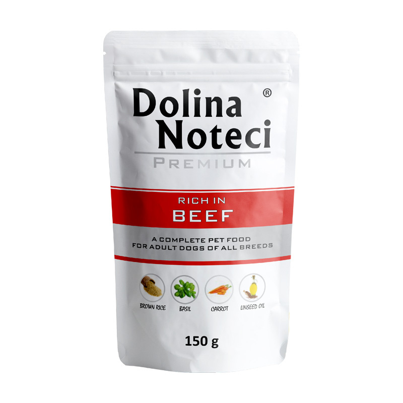 Mokra karma dla psa Dolina Noteci Premium bogata w wołowinę saszetka 150 g