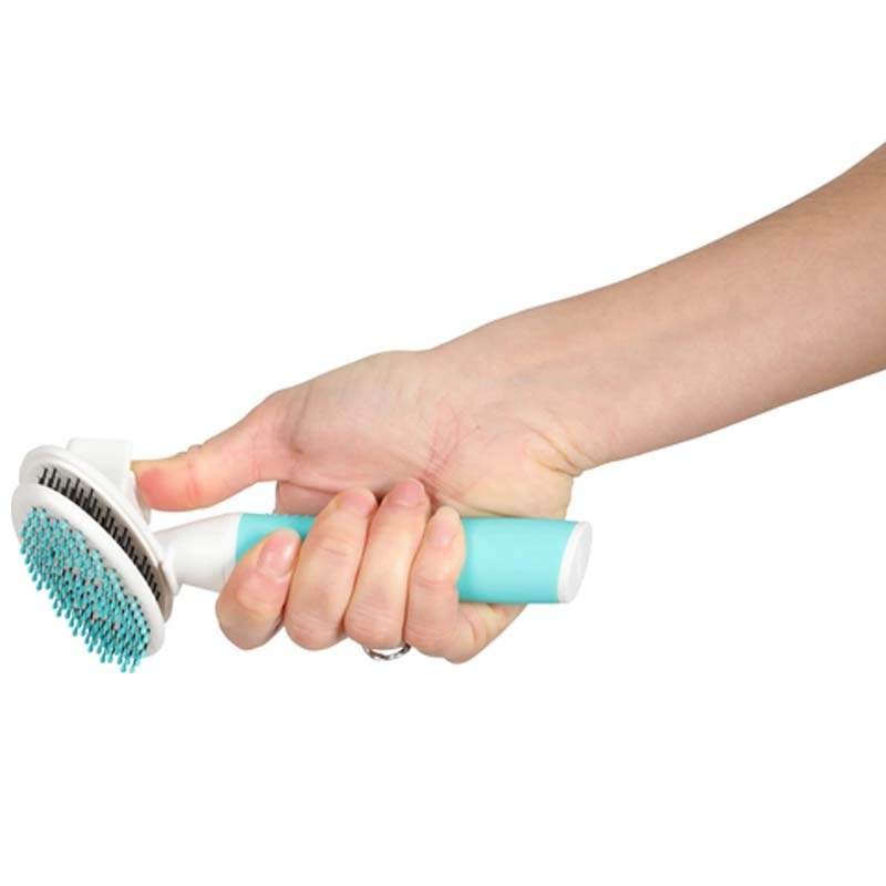 MIĘKKA SZCZOTKA Z WYSUWANYMI IGŁAMI - Umożliwia delikatne szczotkowanie podszerstka, dzięki elastycznym igłom, których plastikowe końcówki chronią skórę szczenięcia przed podrażnieniami. Plastikowe końcówki zapewniają większy komfort zwierzęcia. Dzięki wysuwanym igłom, szczotka jest wygodna w użyciu i łatwa do utrzymania w czystości.