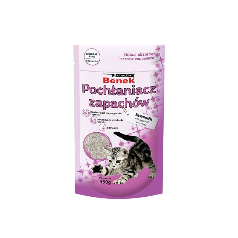 Pochłaniacz na bazie naturalnego mineralnego surowca, wzbogacony kompozycja zapachową o przyjemnym naturalnym zapachu o właściwościach aromaterapeutycznych. Działa kojąco i uspokajająco na zwierzęta. Pochłaniacze zapachów to grupa wyrobów pokrewnych neutralizatorom, spełniająca podobne funkcje tj. poprawa parametrów użytkowych żwirków higienicznych oraz usuwanie zanieczyszczeń pozostawionych przez zwierzęta. Doskonale adsorbują nieprzyjemne zapachy, dbając jednocześnie o szeroko pojętą higienę w kuwecie i wokół niej. Dostępne w poręcznych opakowaniach foliowych ze struną umożliwiającą zamknięcie preparatu w okresach pomiędzy jego stosowaniem. Pochłaniacze to produkty uniwersalne przeznaczone do stosowania z wszystkimi rodzajami żwirków.