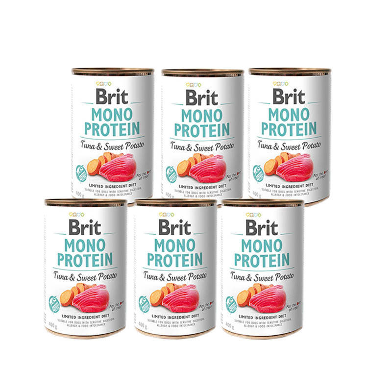 BRIT MONOPROTEIN TUNA&SWEET POTATO - karma mokra dla psów zestaw 6 x 400 G