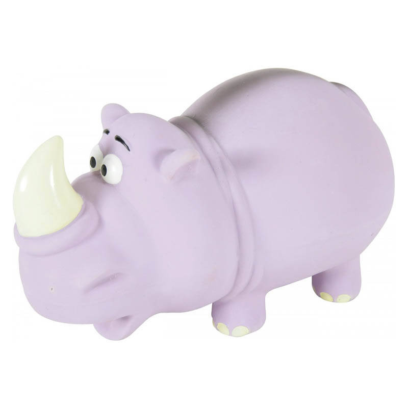 Lateksowa, piszcząca zabawka dla psa w kształcie nosorożca dostarczy zwierzęciu mnóstwa rozrywki i zaspokoi jego naturalną potrzebę gryzienia. Dzięki wykonaniu z lateksu zabawka jest całkowicie bezpieczna. Materiał ten jest nietoksyczny, a dodatkowo w przypadku połknięcia przez zwierzę, nie twardnieje w przełyku i jest naturalnie i całkowicie wydalany. Zabawka dostępna jest w dwóch rozmiarach (14 cm i 16,5 cm).