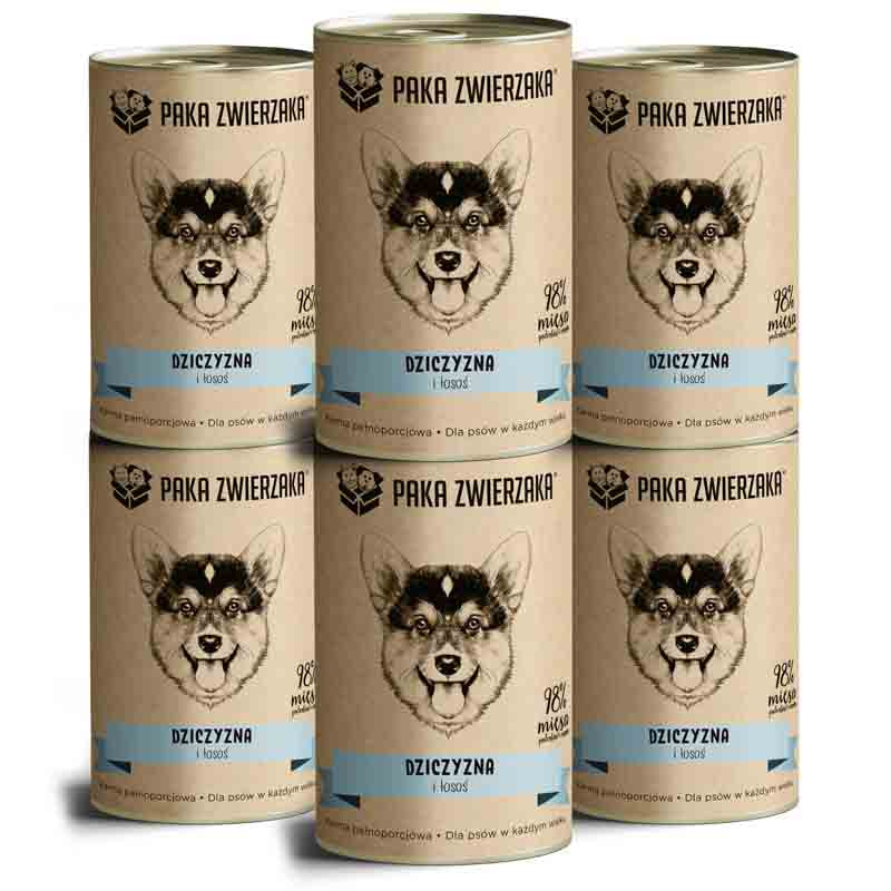 Paka Zwierzaka Karma mokra dla psa Dziczyzna i łosoś 6 x 400 g