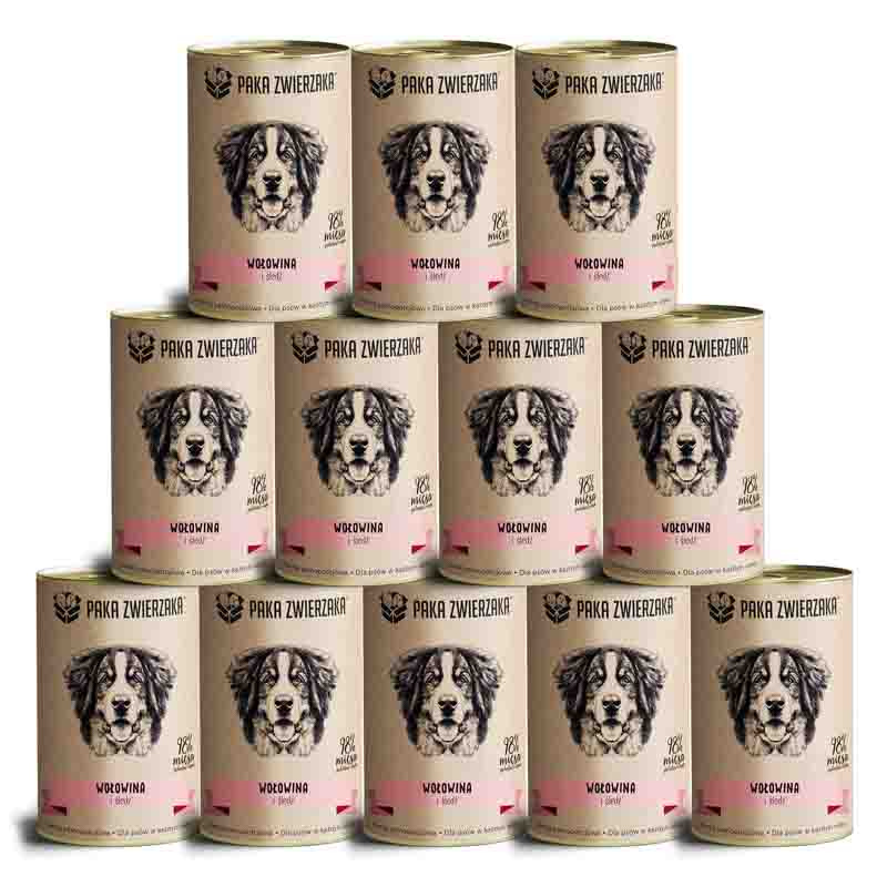 Paka Zwierzaka Karma mokra dla psa Wołowina i śledź zestaw 12 x 400 g