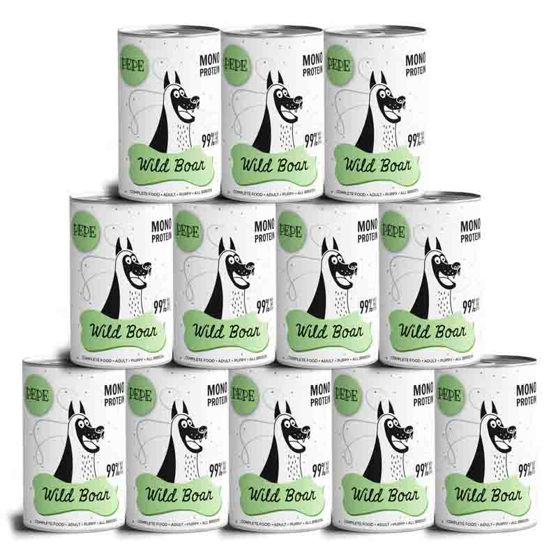 Paka Zwierzaka Karma mokra dla psa PEPE Wild Boar (dzik) zestaw 12 x 400 g
