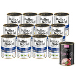 Mokra karma dla psa Dolina Noteci Premium bogata w cielęcinę z zielonym groszkiem zestaw 12 x 400 g + Piper Animals z kaczką i gruszką 400 g Gratis