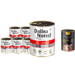 Mokra karma dla psa Dolina Noteci Premium bogata w wołowinę zestaw 6 x 800 g + gratis Piper Animals z sercami z kurczaka i szpinakiem 400 g